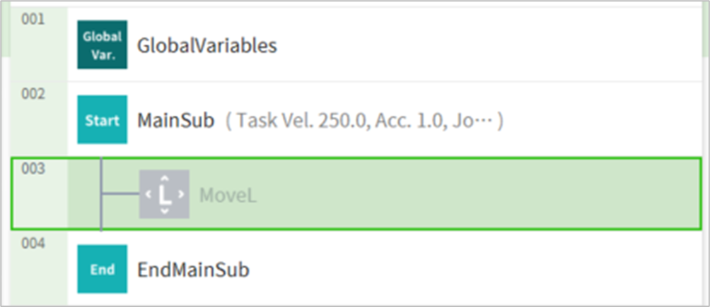 - Une commande est ajoutée à la ligne suivante par rapport à l'emplacement sélectionné.