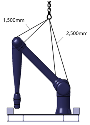 Lorsque le robot est soulevé, il peut basculer en fonction de facteurs environnementaux tels que l'état d'installation du câble métallique, la posture du robot et l'état de fixation en option. Soyez donc prudent.
