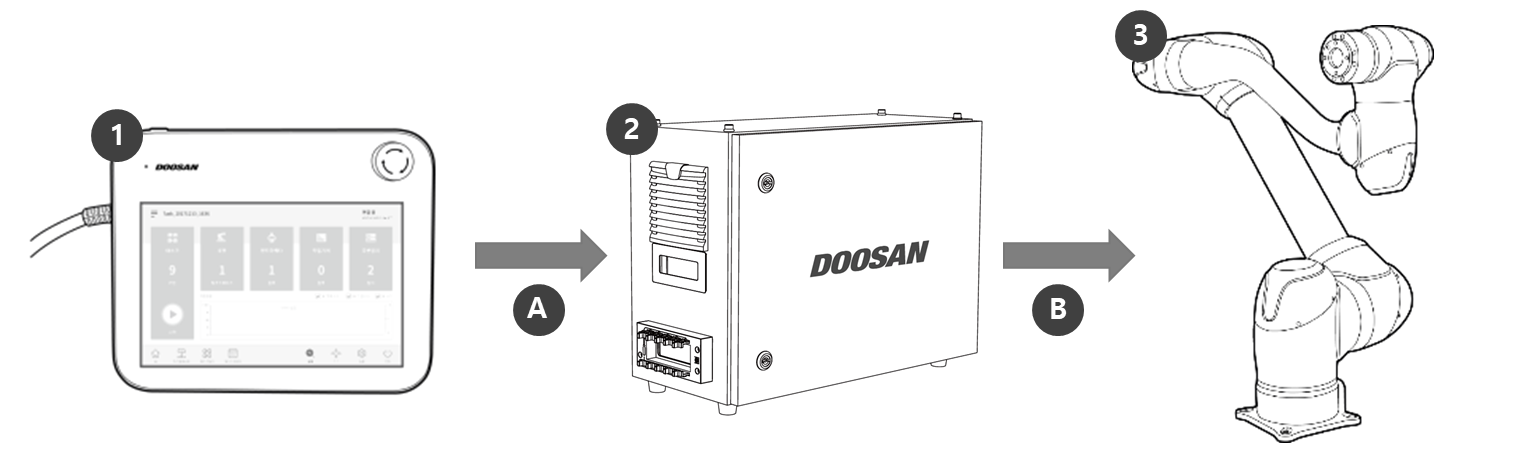2 | Contrôleur | règle le mouvement du robot en fonction de la position ou du mouvement défini par le boîtier d'apprentissage. Il dispose de plusieurs ports d'E/S permettant de connecter et d'utiliser différents types d'équipements et d'appareils. |