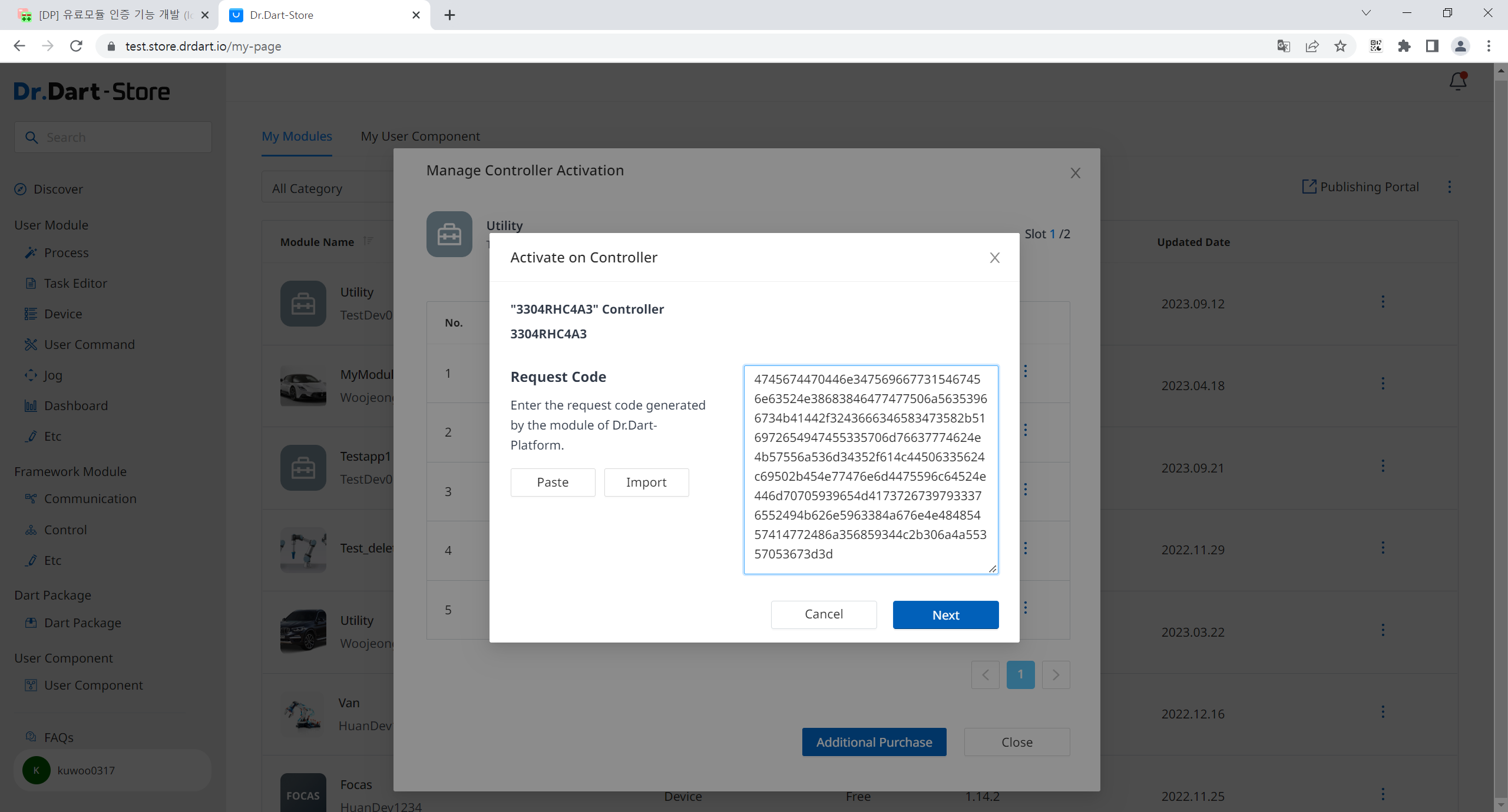 A modul aktiválási kódját online kell kiállítani és hitelesíteni a Dr. Dart-Store-on keresztül.
