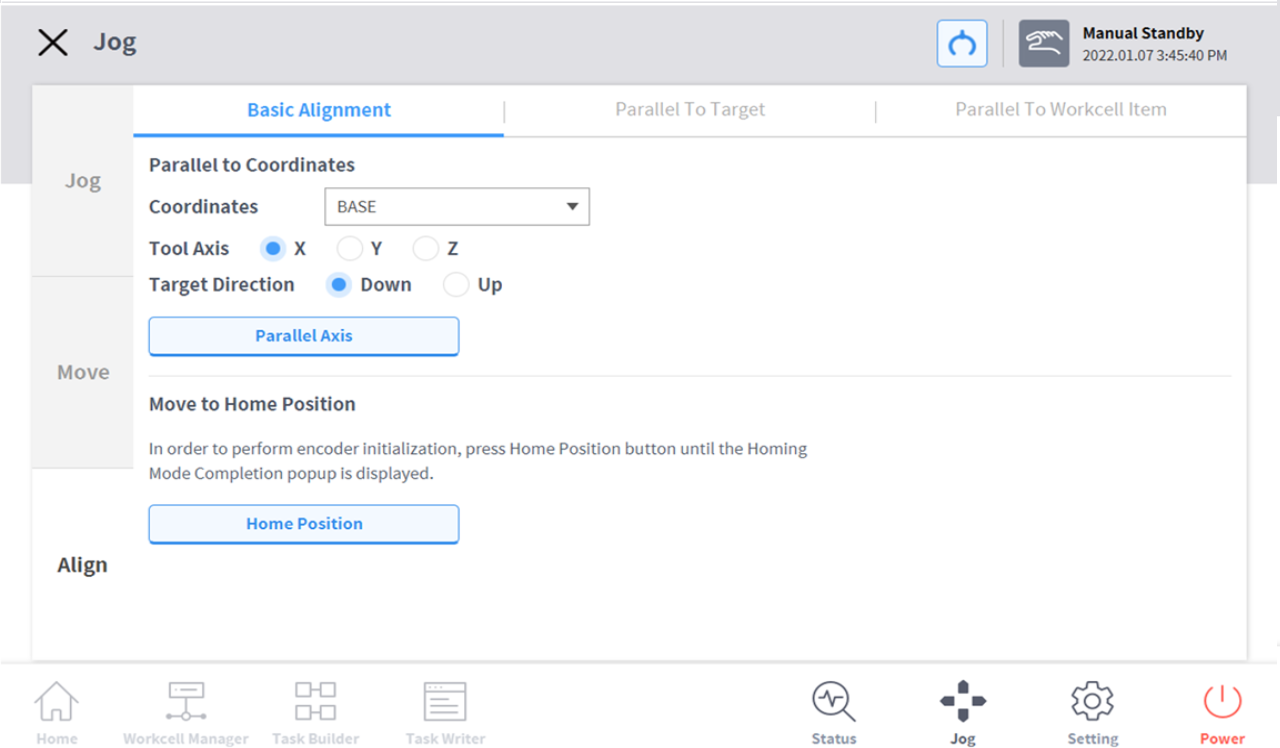 - Érintse meg és tartsa lenyomva a Tengely igazítása gombot a tengely igazításához.