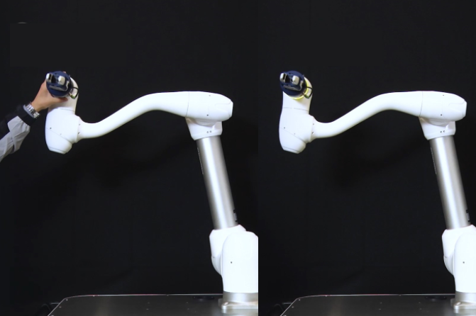 - Tartsa meg a robot végét, és lassan nyomja a robot testirányába. A robot a nyomóerő hatására elmozdul, és visszatér eredeti helyzetébe.