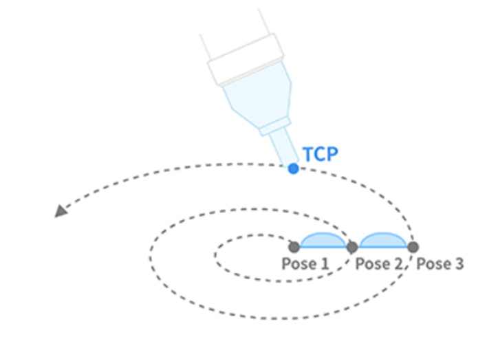 • L a MoveL-ben lineáris. Ebben a mozdulat során a robot végén lévő TCP lineáris mozgással a cél póz (pozíció és szög) felé mozog.