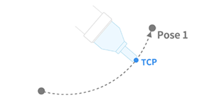 A robot póz úgy van kijelölve, hogy a robot TCP a célpontra mozog