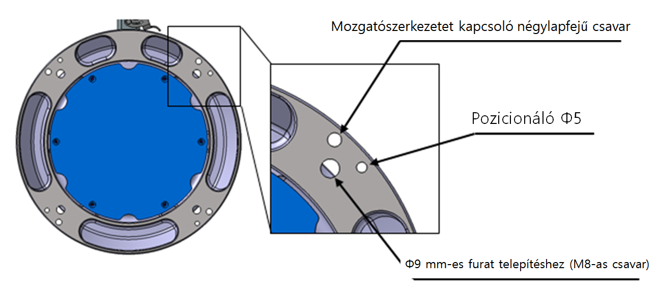 - A H-sorozat esetén négy M8-as négylapfejű csavar van az alapra szerelve a mozgatás megkönnyítéséhez.