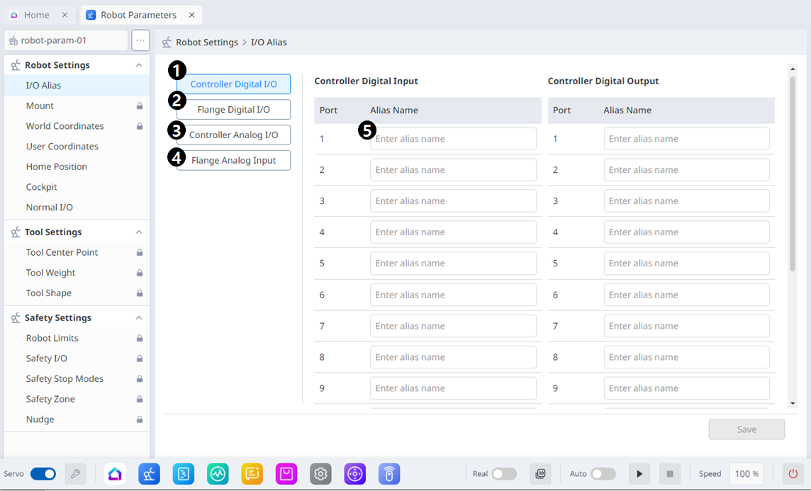 | 2 | I/o digitale a flangia | Il nome dell'i/o digitale della flangia può essere impostato singolarmente. |