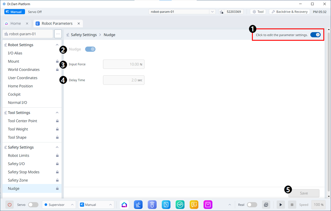 • Per impostare Nudge, selezionare  robot > Nudge item (robot > Nudge) dalla cella di lavoro robot.