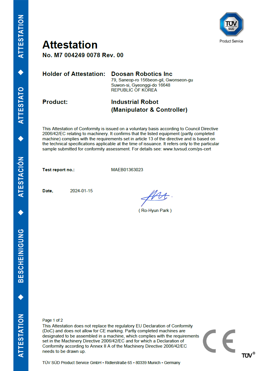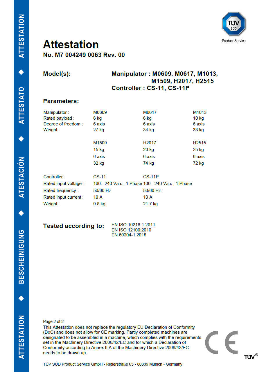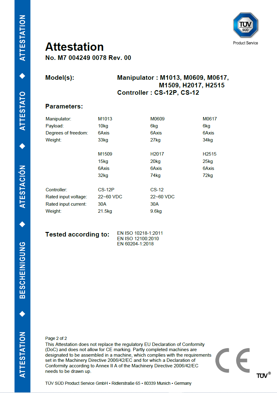 Certificazione di conformità della direttiva macchine europea