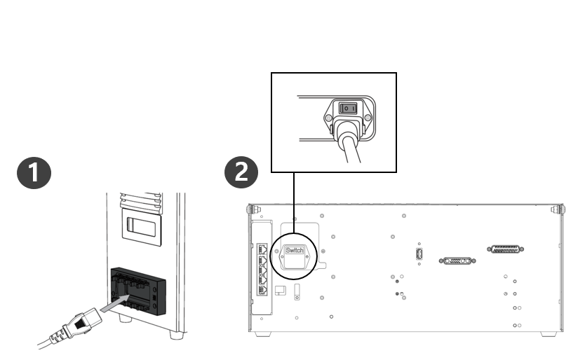 コントローラに電力を供給するには、コントローラの電源ケーブルを標準IEC電源コンセントに接続します。