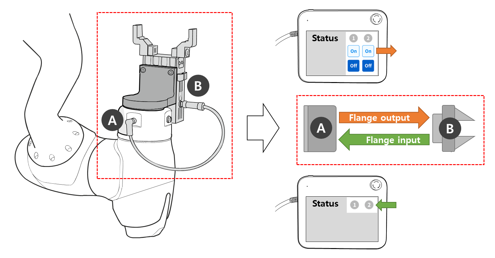 ティーチペンダントには、フランジI/Oに接続されたツールの動作をテストする機能があります。