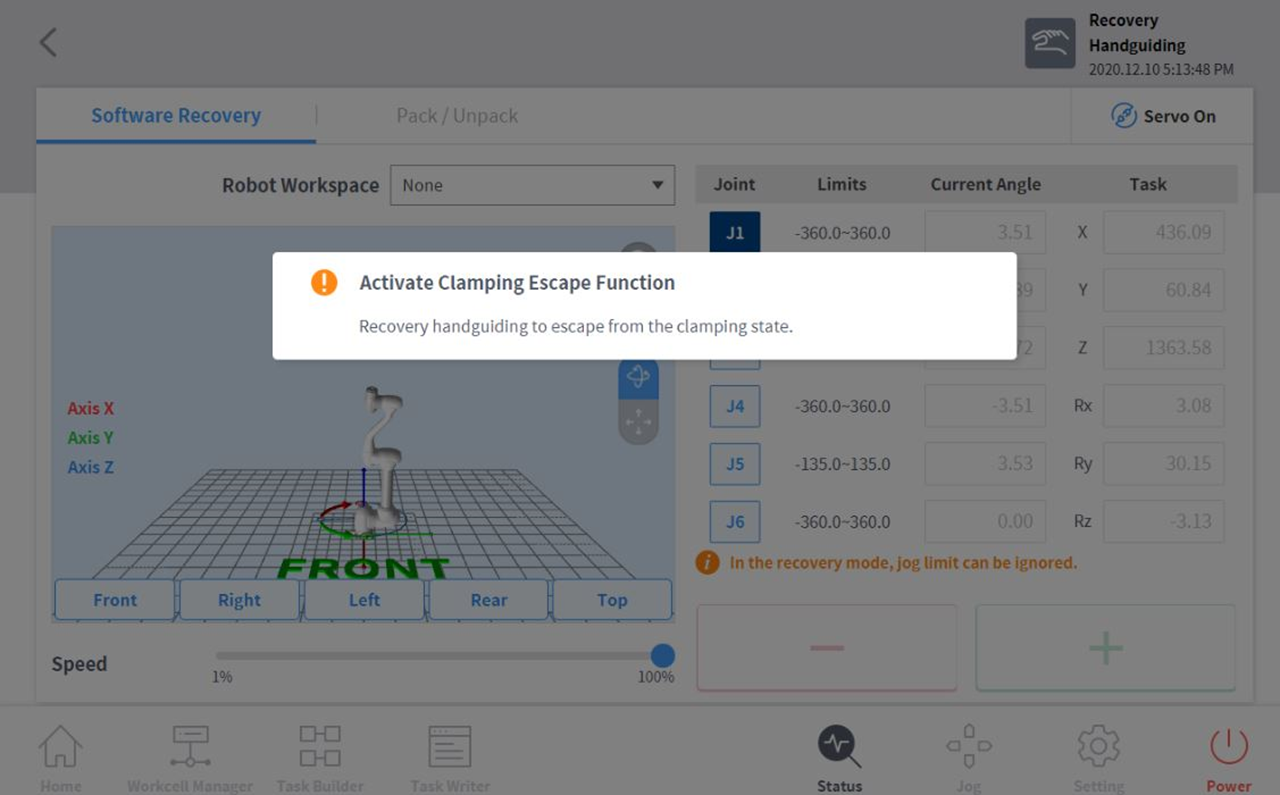 - Servo Off状態から入る場合 -> Backdrive Handguiding Modeに入る。