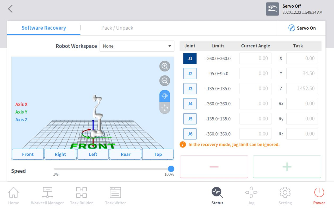 ソフトウェア回復モードは、ジョイント角度制限が3度を超えては使用できません。