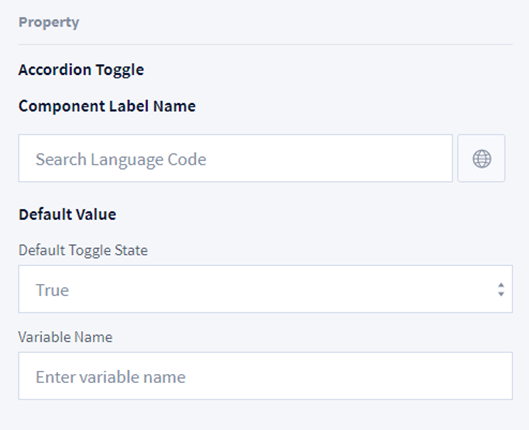Accordion Toggle Control Component의 설정 정보는 아래와 같습니다.