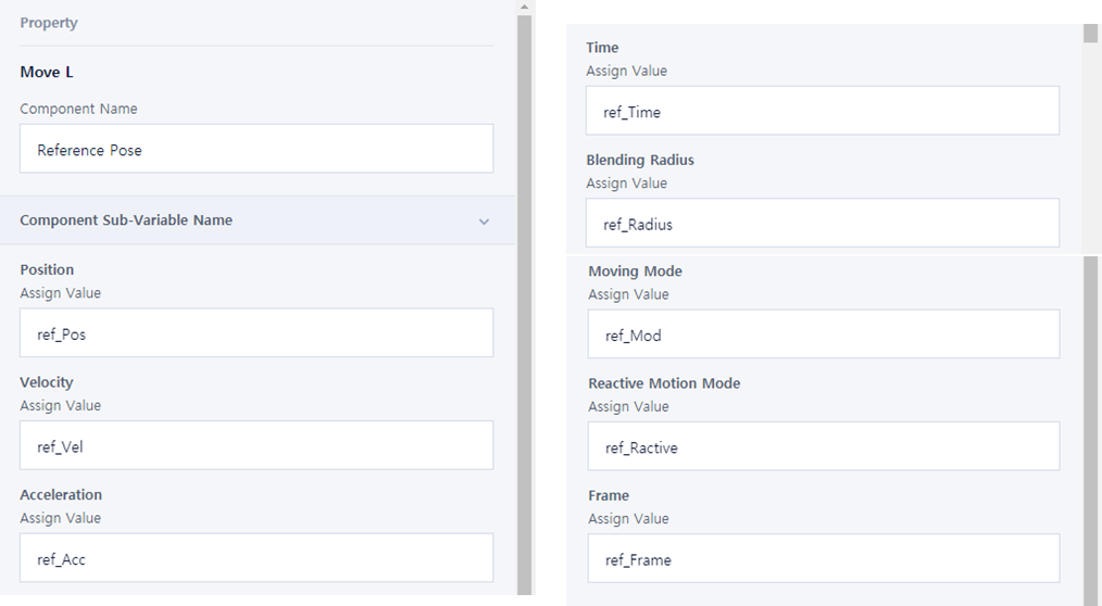 Move 명령어를 동작시키기 위해 각 Property의 이름과 값을 입력해야 합니다.