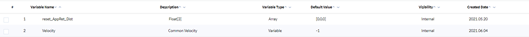 기존에 생성된 Global Variable 아이템을 확인 할 수 있는 화면 입니다.