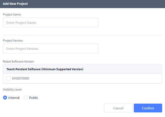 | Robot Software Version | 프로젝트 사용 가능한 TP 최소 버전 |