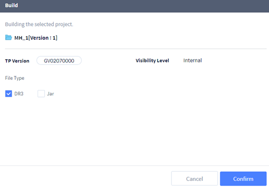 | Confirm | 선택한 파일 타입으로 프로젝트 빌드 |