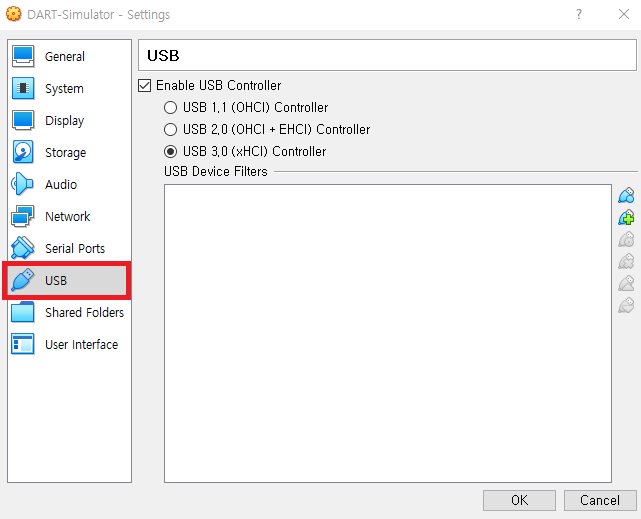 - USB 설정 화면으로 진입하십시오.