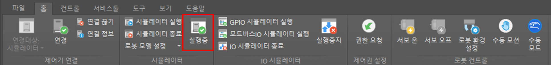 가상 제어기를 실행하려면 메인 메뉴에서 홈을 선택한 후 시뮬레이터 실행 버튼을 클릭하십시오.