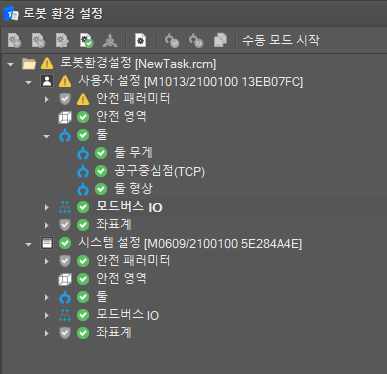 로봇 환경 설정 UI는 트리 컨트롤로 구성되며 트리는 사용자 설정 과 시스템 설정 두 가지 노드로 분류됩니다.