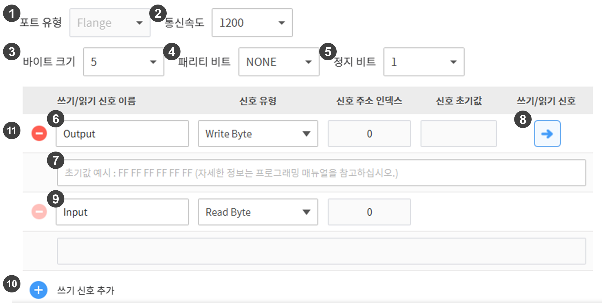 6 | 신호 이름 | 주고 받을 신호의 이름을 설정합니다. |