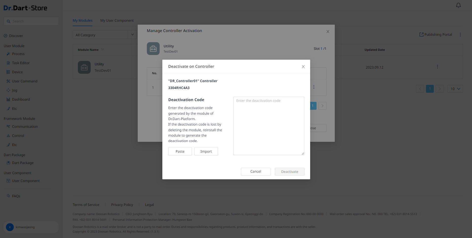 Dr.Dart-Store을 통해 유료 모듈 구입 후 모듈 실행 시 활성화 과정을 거쳐야 합니다.