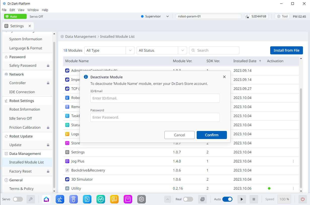 모듈 활성화 코드를 발급받아 온라인 상태에서 Dr.Dart-Store를 통해 인증을 받아야 합니다.