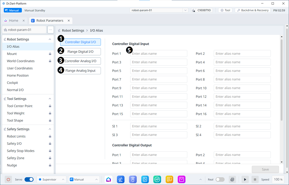 | 2 | 플랜지 디지털 I/O | 플랜지 디지털 I/O의 이름을 각각 설정할 수 있습니다. |