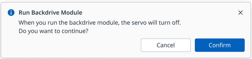 Backdrive란 모터 구동 전원을 차단한 상태로 브레이크만을 해제하여 외력에 의해 로봇의 조인트를 움직일 수 있습니다. Recovery 모드나 핸드가이딩으로 로봇을 정상 상태로 복귀시킬 수 없는 경우에 사용할 수 있습니다. Backdrive 모드를 실행하면 로봇의 각 조인트의 브레이크를 사용자가 해제하거나 체결할 수 있습니다.