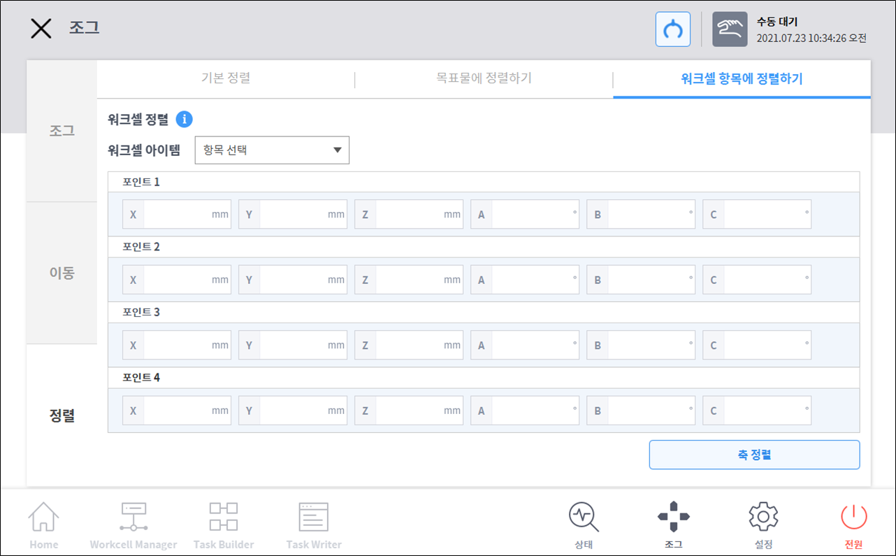 로봇의 TCP를 워크셀 항목을 기준으로 정렬합니다.