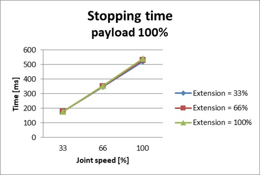 최대뻗음일 때 정지거리 (rad) | 최대뻗음일 때 정지시간 (ms) |
