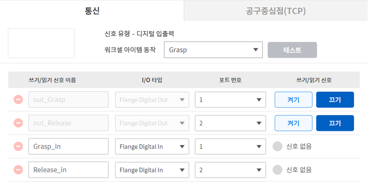 3. 입출력 신호의 설정을 위한 포트 번호를 선택하십시오. 기본 값은 App Builder에서 설정한 초기값으로 표시됩니다.