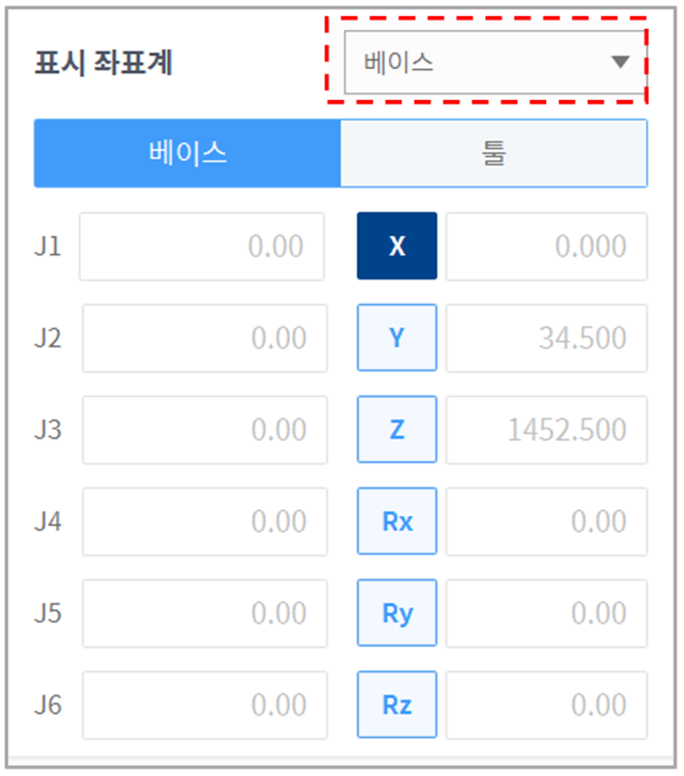 - 이동하려는 베이스 좌표계를 선택하십시오.