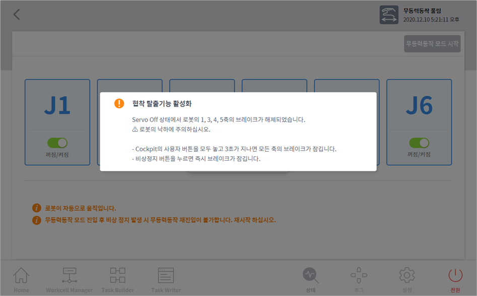 - Servo Off 상태에서 진입할 경우 무동력동작 모드로 진입한다.