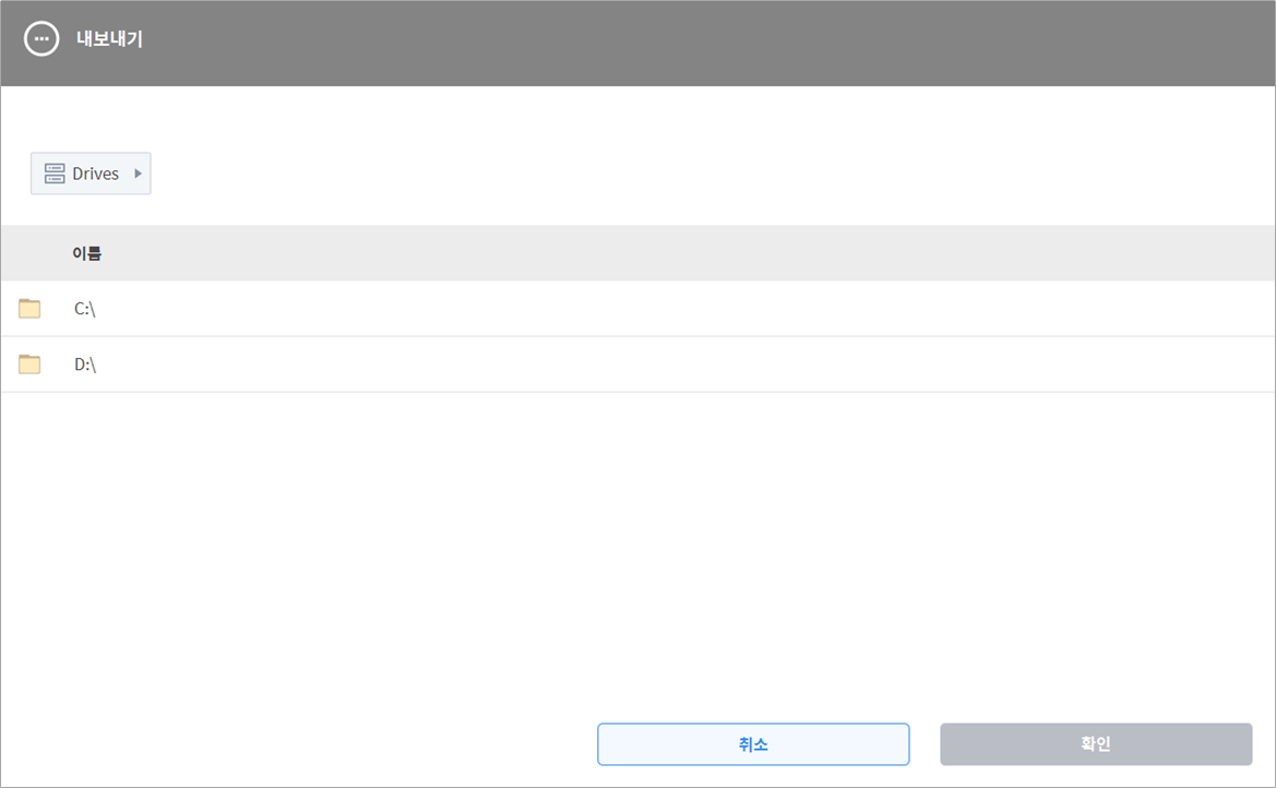 내보내기 팝업이 표시됩니다. 태스크를 내보낼 외장 드라이버를 선택하고 확인 버튼을 누르십시오.