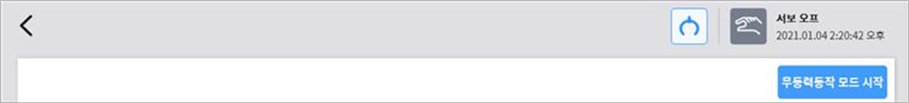 - 무동력동작 버튼이 활성화되지 않는다면 비상 정지 버튼을 눌렀다 해제하거나 서보 Off 버튼을 누르면, 활성화됩니다.