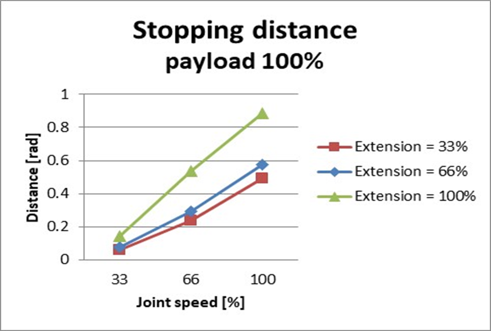 최대뻗음일 때 정지거리 (rad) | 최대뻗음일 때 정지시간 (ms) |