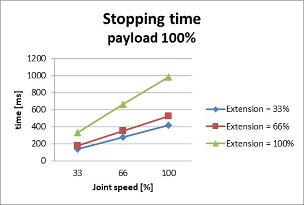 최대뻗음일 때 정지거리 (rad) | 최대뻗음일 때 정지시간 (ms) |