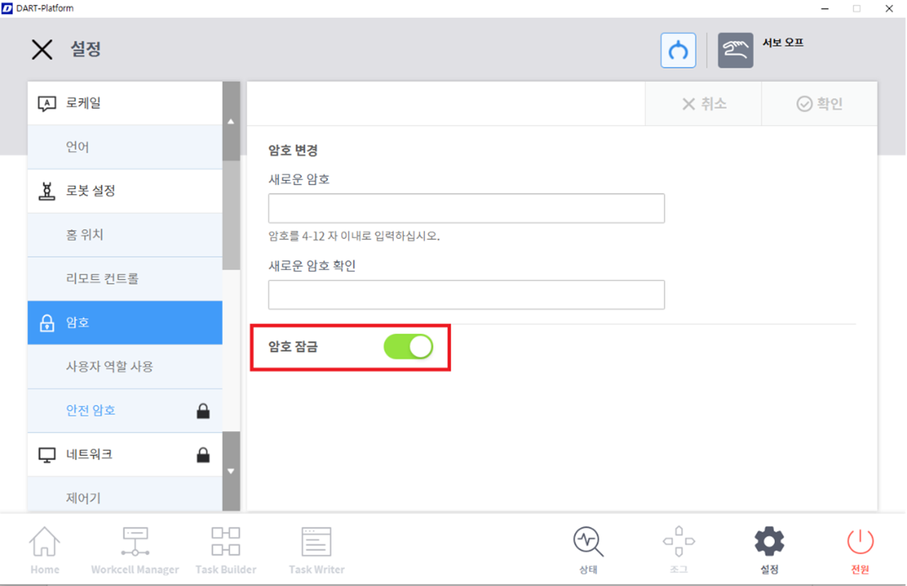 - 설정 메뉴 영역에서 [암호] – [안전 패스워드] 메뉴를 선택하십시오.