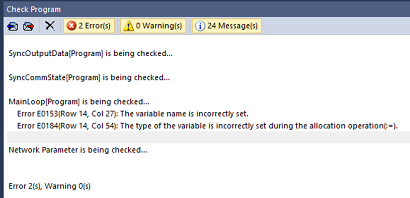 Program Check 후 아래와 같은 에러가 발생될 시 Local Variables에 누락된 변수를 추가해주시면 됩니다.