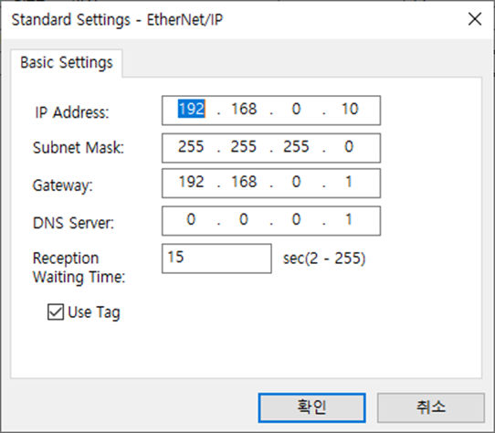 - 디지털 용접기의 상세 EtherNet/IP Network 구성정보를 입력합니다.