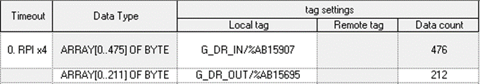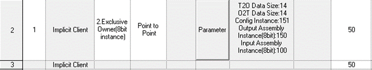 - Parameter : T20 Data Size, 02T Data Size, Config Instance, Output Assembly Instance, Input Assembly Instance