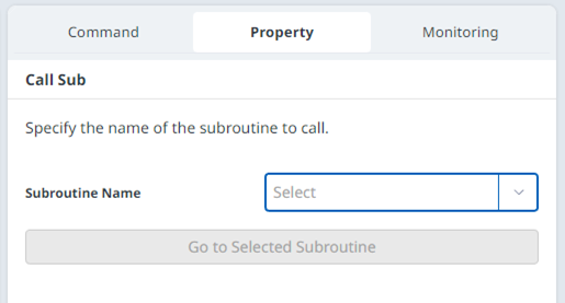 Als het aantal regels in het taakprogramma toeneemt, kan het moeilijk worden om subroutines te vinden. Raak in dat geval de opdracht Ga naar geselecteerde subroutine aan in de opdracht eigenschap van aanroepsub om de focus naar de bijbehorende subopdrachtregel te verplaatsen.