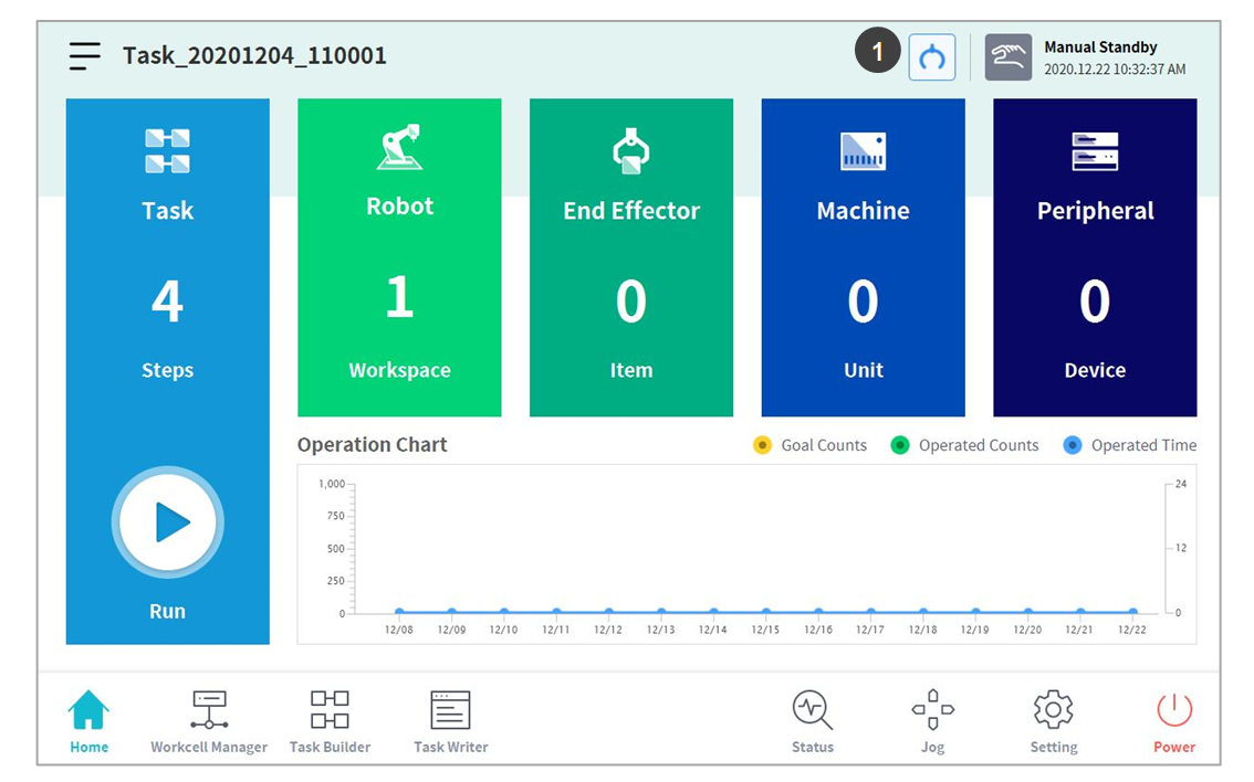 - Druk op de knop Instellingen om het TCP (Tool Center Point), gewicht of vorm van het betreffende werkcelitem op te slaan.
