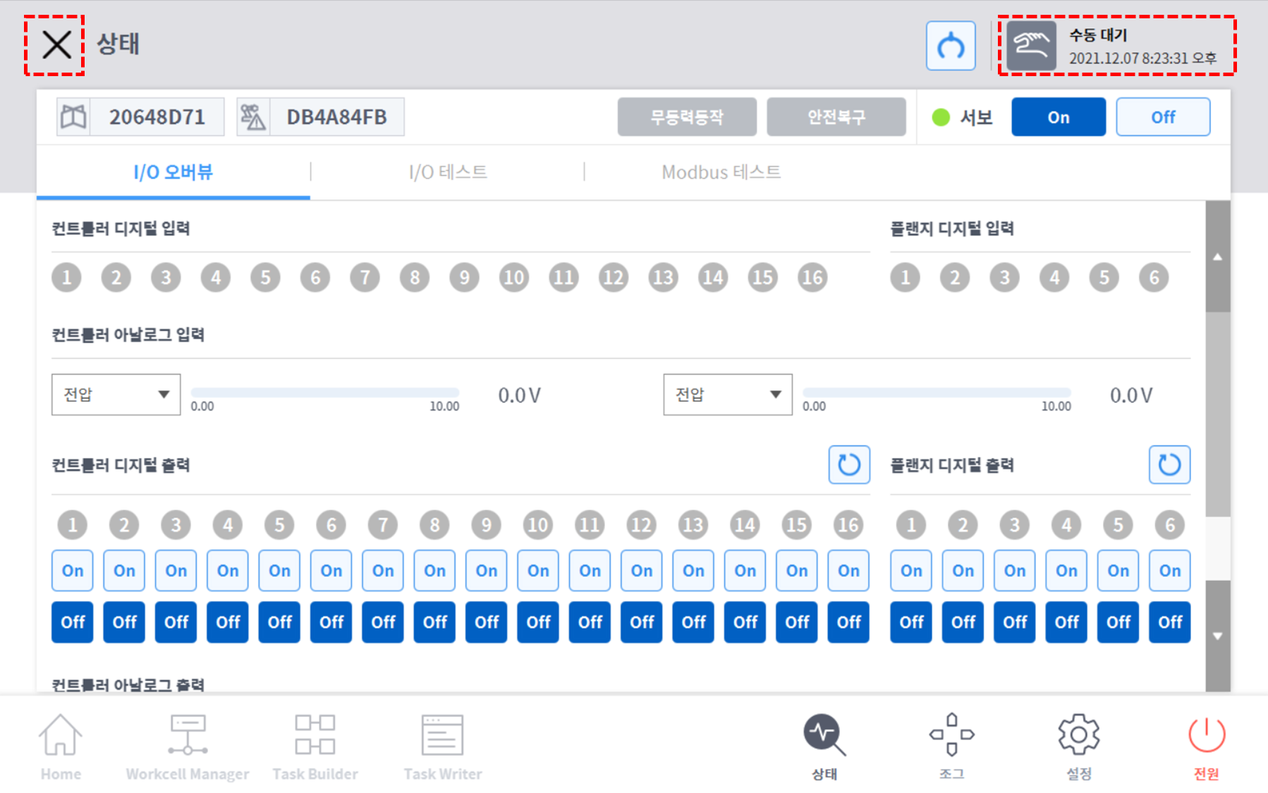 Het statusdisplay van de robot rechtsonder op de programmeerhanger verandert van herstel stand-by in Handmatige stand-by. De robot bevindt zich nu in een toestand waarin de gebruiker deze kan bedienen. Druk op de knop Sluiten in het statusscherm om het statusvenster te sluiten.