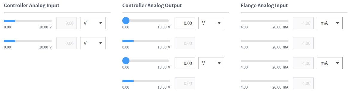 - Druk op de vervolgkeuzelijst van de analoge ingang van de controller/flens om het te controleren item te selecteren.
