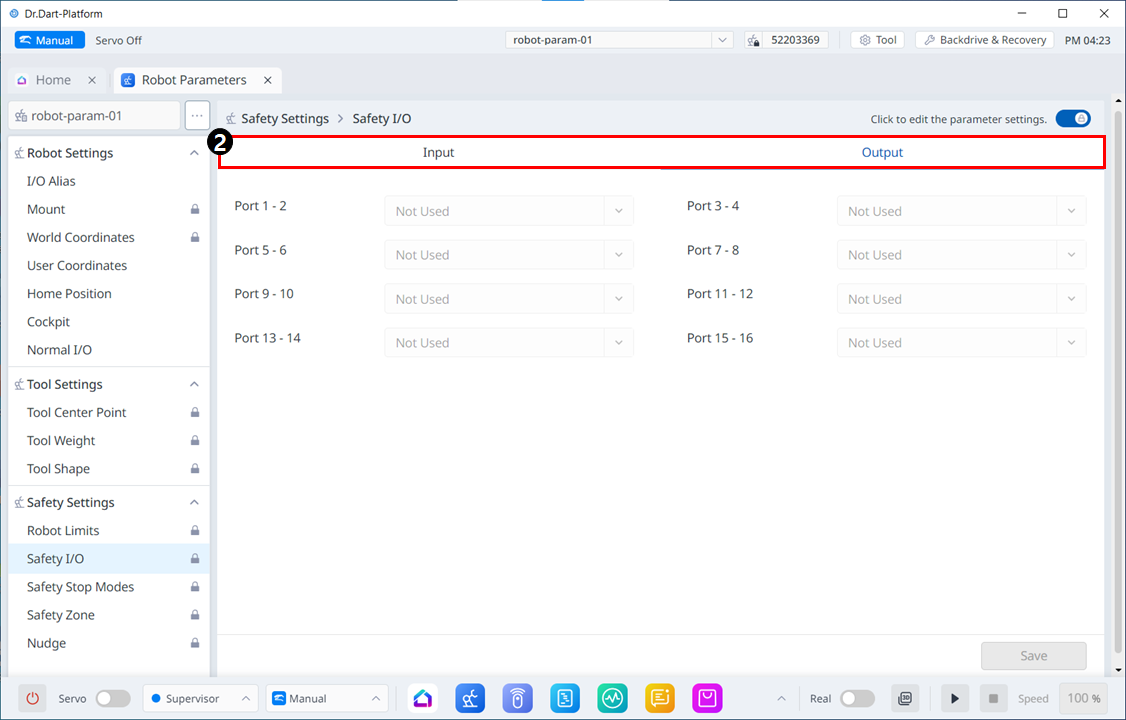 Ta funkcja umożliwia wprowadzanie/przesyłanie sygnałów związanych z bezpieczeństwem za pośrednictwem terminala nadmiarowego. W przypadku wykrycia sygnału innego niż nadmiarowy sygnał wejściowy lub wyjściowy bezpieczeństwa, system określa, czy jest to zwarcie, czy usterka sprzętowa, i zatrzymuje robota w trybie STO Stop.