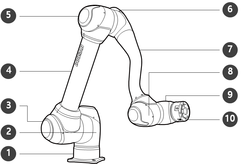 4 | LED (1-axis) | Sygnalizuje stan robota za pomocą różnych kolorów. Aby uzyskać więcej informacji na temat stanu robota, patrz „ Stan i kolor wskaźnika LED kołnierza w poszczególnych trybach” |