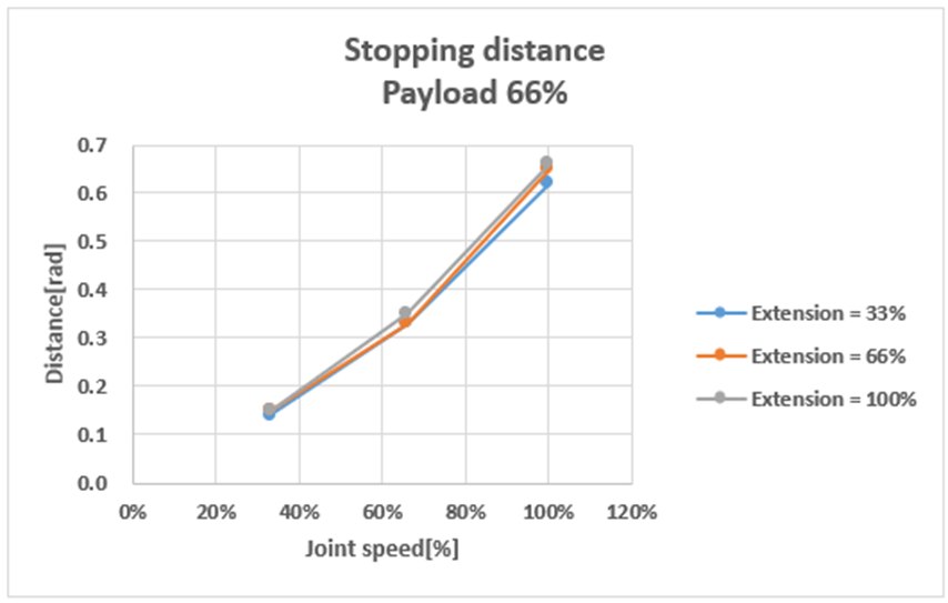 Odległość zatrzymania przy 33% maks. obciążenia (rad) | Odległość zatrzymania przy 66% maks. obciążenia (rad) |