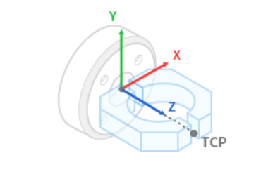 - TCP (Punkt środkowy narzędzia): TCP oznacza punkt środkowy narzędzia, a punkt końcowy chwytaka jest zazwyczaj ustawiony jako TCP